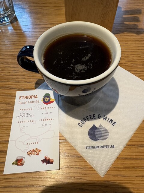 デカフェを注文。デカフェといえばとても深い味で特徴的だが、今回はデカフェと気づかないくらいの味の深さがあった。