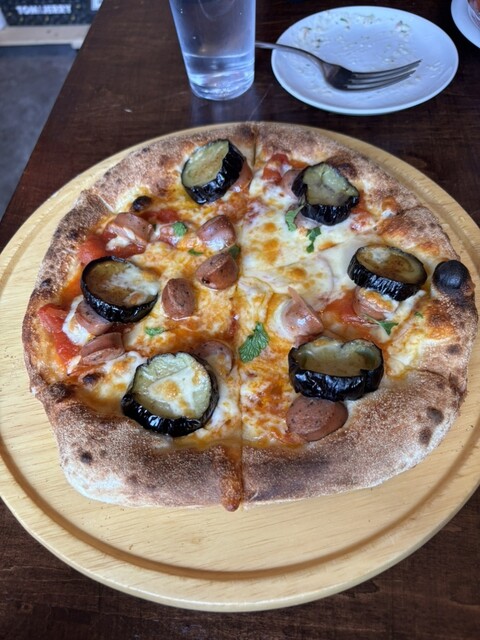 今回はお手軽ピザランチ1300円を注文しました。内容は本日のピザorマルゲリータ、サラダ、ドリンクです。今日のピザはソーセージとオクラのピザでした。ここのピザはとにかくチーズがトロトロで、フォークなしで持ち上げるのが難しいです!また、生地との相性もよく耳まで美味しく食べれます!