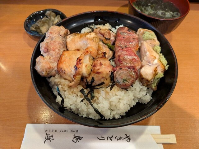 ■焼鳥丼:焼鳥5種(串抜き)、お吸い物、漬物