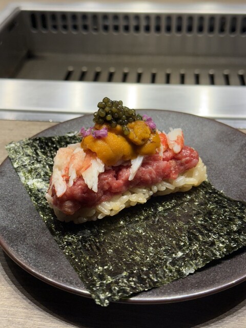 キャビアをのせたユッケから始まり、焼き物・すき焼き・巻物・デザートまで構成が素晴らしく、飽きずに最後まで楽しめるコース内容。