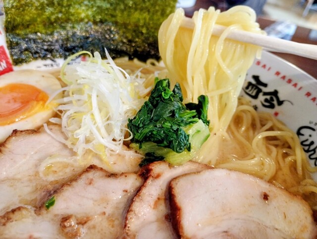 研修を受けた後でご褒美に限定の〝魚介鶏白湯の塩らーめん〟大を注文しました。