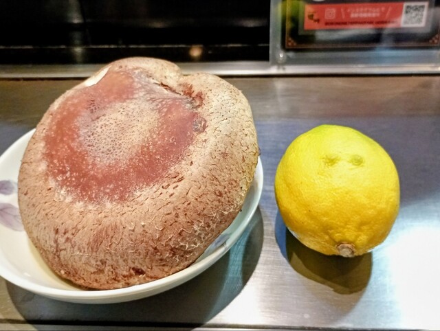 店長さんに本日のメニューを上から説明して頂き、まず〝天恵菇(てんけいこ)ジャンボしいたけ〟と〝香住の鰰(はたはた)〟を注文。
