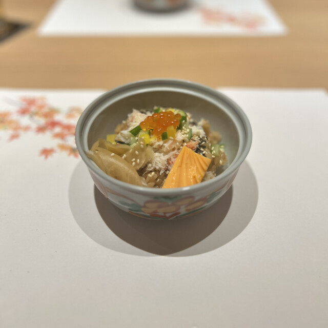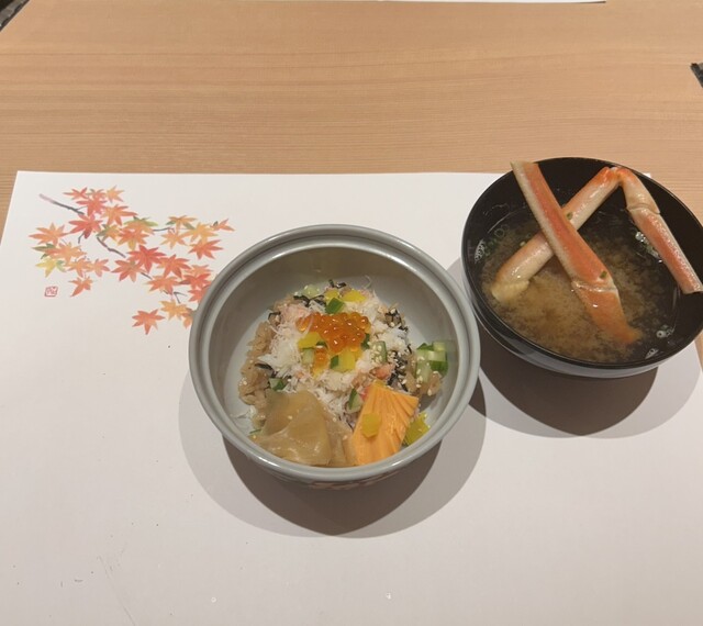 蟹の鉄砲汁は旨みがたっぷりと溢れ出し、蟹ちらしとの相性は言わずもがな。後味にふわりと磯の香りが漂い、海の旨みが詰まった至極のひと椀でした。