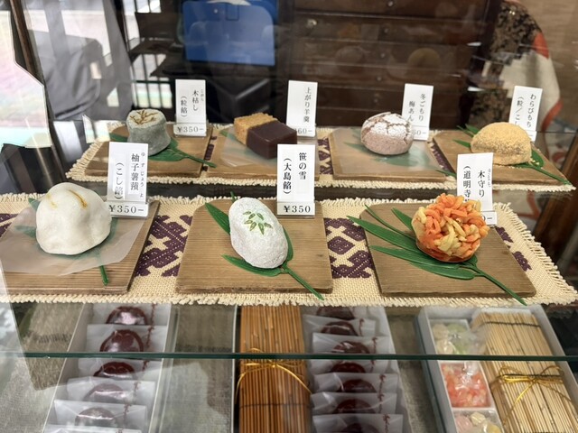 生菓子だけで無く、干菓子、葛湯、金平糖、お煎餅も販売してます。