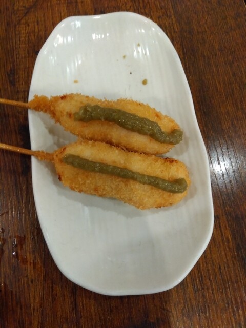 寒い中、揚げたての串揚げホクホク☃️
