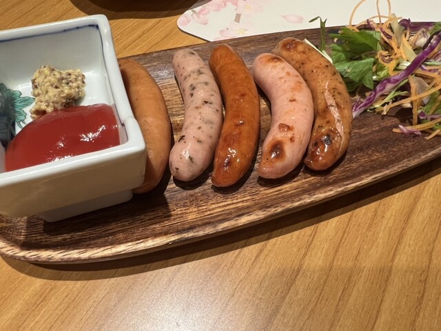 ソーセージ5種盛り合わせは、ノーマルからハーブやペッパーが効いたものまで種類の違うソーセージが楽しめます♪