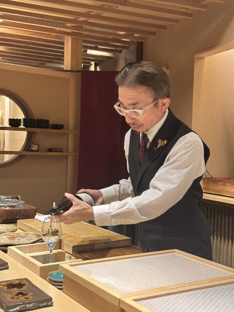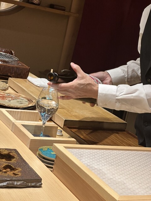 ソムリエ兼唎酒師の方が提供される鮨にぴったり寄り添う一本を