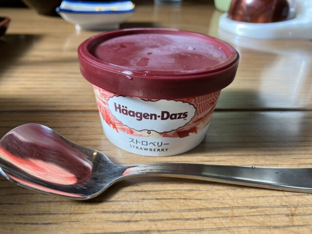 本日のデザートはフローズン苺と甘いジャムのヨーグルトちゃんとハーゲンダッツ様のストロベリー✨