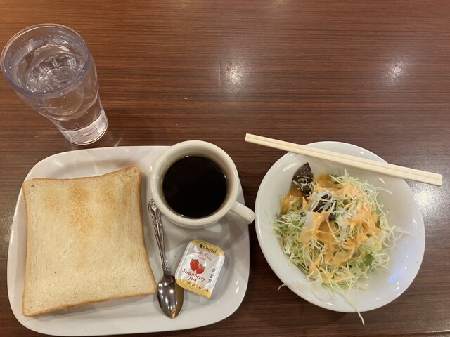 今日は平日なのに何故かいつもより賑わいのある食堂でブラックコーヒー(飲み放題)を頂きつつ、無料モーニングを堪能しました♪