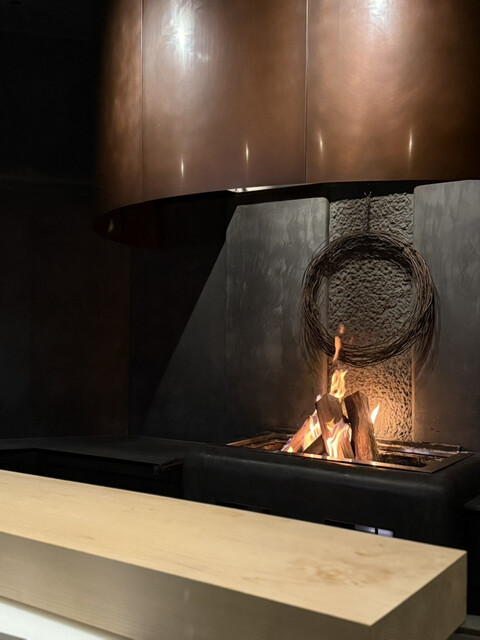 上質な空間で見る焚き火に思わずうっとり。