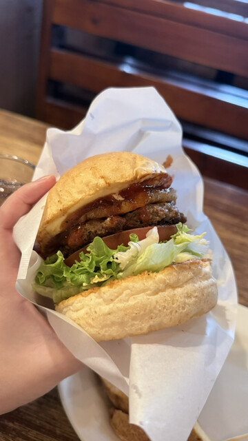 絶対一口に収まらない高さのあるバーガーにかぶりつくのは背徳感と贅沢感がありました。