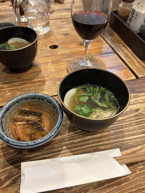 あとお通しが2品魚のピリ辛南蛮漬け 蛤のお椀