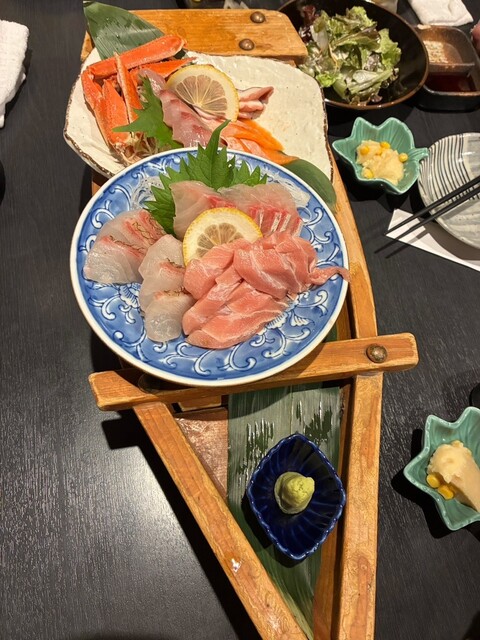 今回は友人と訪れ、名物メニューを中心に堪能しました。まずは、見た目も豪華なお造り盛り合わせ。新鮮なマグロや白身魚に加え、カニの身も添えられており、どれも鮮度抜群で舌の上でとろけます。特に、このボリュームで驚きの価格設定には感動しました。^_^