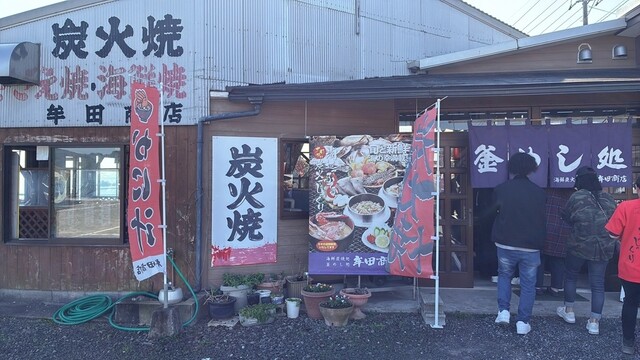 新鮮な海鮮を求めて、賑やかな雰囲気の「海鮮牟田商店」へ訪問しました!店頭のショーケースには、牡蠣やホタテ、エビ、サザエなど様々な海産物が並び、その活気ある雰囲気はまるで漁港の市場のようです。