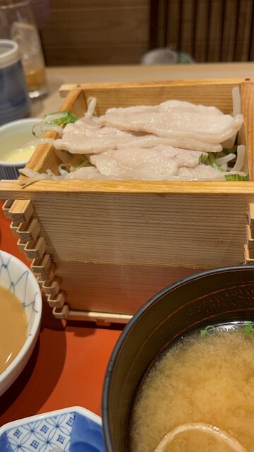 蓋を開けた瞬間に立ち上る湯気とともに、黒豚の甘い香りが広がります。余分なあぶらが落ちた黒豚は驚くほどしっとりと柔らかく、シャキシャキの野菜と一緒にポン酢でいただけば、素材本来の旨みがダイレクトに伝わります。海老焼売も入った、非常に満足度の高い一品です。^_^