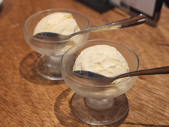 デザートのバームクーヘン串はホットケーキのような味わいで、バニラアイスとの組み合わせが最高の締めになりました。
