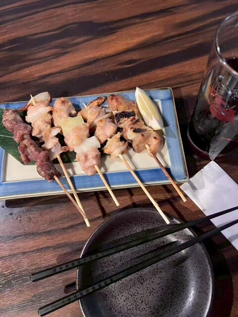 続いて串焼き。焼き色がもう食欲を刺激してくるんだけど、噛んだ瞬間じゅわっと肉汁が広がって、脂の甘みがしっかり。変に重すぎず、でも満足感はしっかりあって、これはビールが進まないわけがない。串の本数も複数あって、おデブ的には「まだある♡」って思えるのが嬉しいポイント。