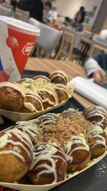ジンジャーエールもセットで頼んだのですが、たこ焼きの濃厚な味に爽やかな炭酸がとてもよく合い、口の中をすっきりリセットしてくれました。フードコートなので気軽に注文でき、座席も探しやすいので、子ども連れには本当にありがたい環境です。