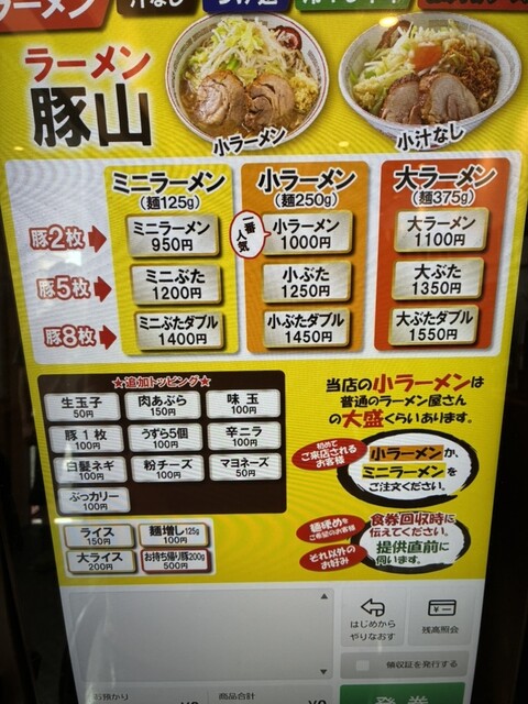 コールは野菜少なめ、にんにく少なめ、アブラ