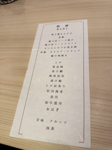 正直、入る前は「格式高そうで背筋伸びる系かな…」と思ったんですが、扉を開けた瞬間その不安はスーッと消えました。店主をはじめ、皆さん物腰が柔らかくて、自然と肩の力が抜ける。この時点で、もう信頼できる。