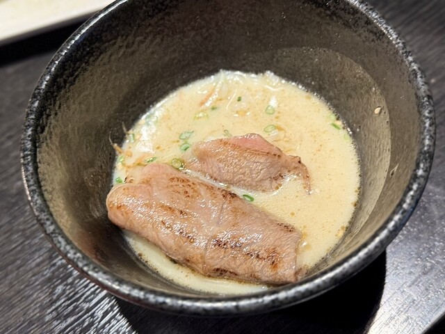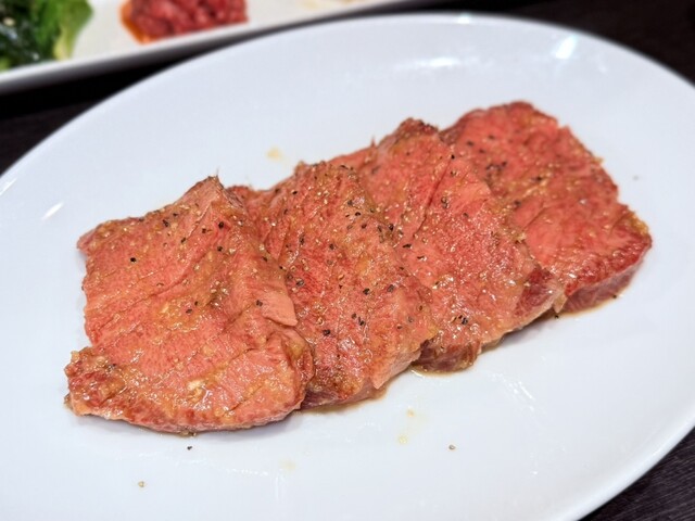 ○厚切り特上タン塩 見た瞬間「分厚っ」と声出るやつ。 でも焼いて一口噛むと、サクッ…ジュワッ…。 簡単に噛み切れる柔らかさで、タンの旨みが口いっぱいに広がる。文句の付け所なし。