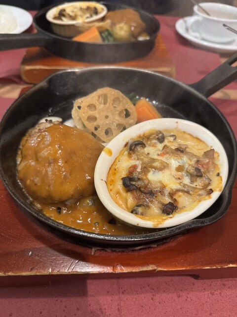 手ごねハンバーグ&きのこペッパーグラタン
