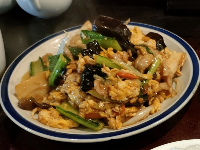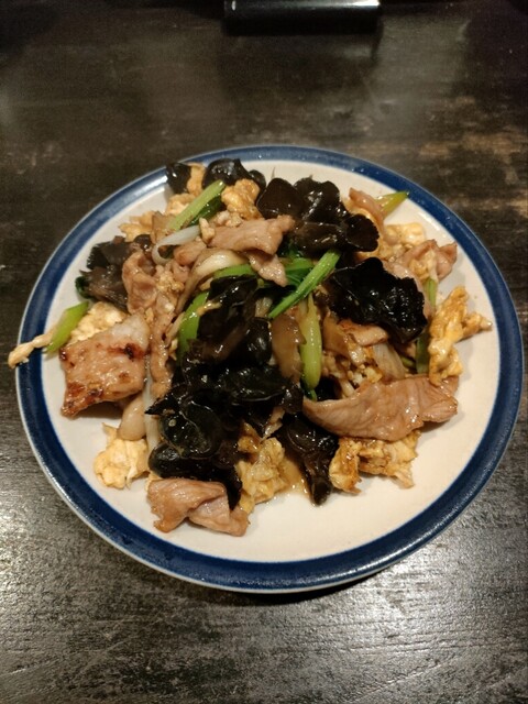 日替わりランチの『キクラゲと青菜の卵炒め』でした…まだ食べたことない麻婆丼にするか焼豚炒飯にしようか悩んでましたが入り口の掲示板を見た瞬間、楽になりました…笑。やっぱりボリュームありますね!ご馳走さまでした。