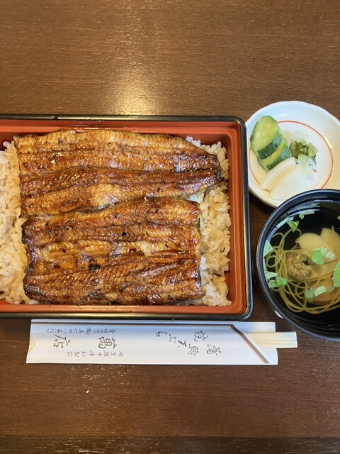 食べ放題イベントの抽選に外れたところ、割引クーポンを頂きましたのでランチに伺いました。30年以上前に浦和に住んでいたのですが、当時はご縁がなく、今回が初訪問です。せっかくなので鰻重の松(5,600円)に肝吸い(+100円)を付けて瓶ビール(950円)と頂きました。