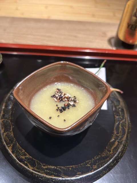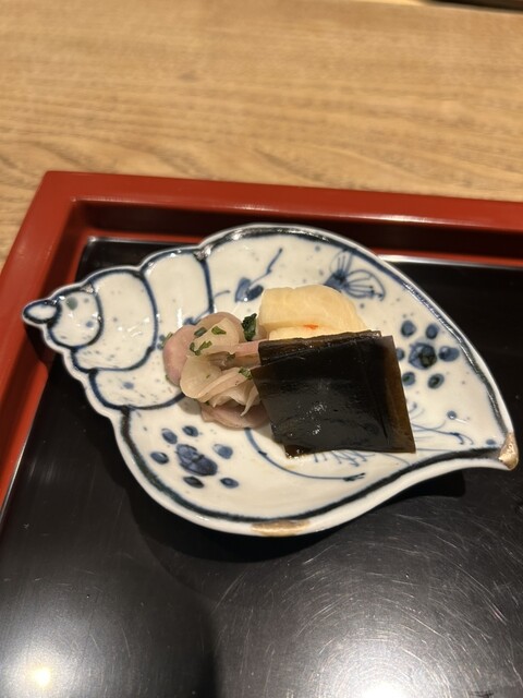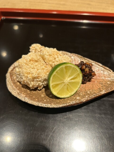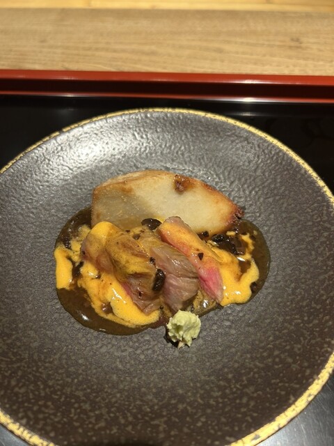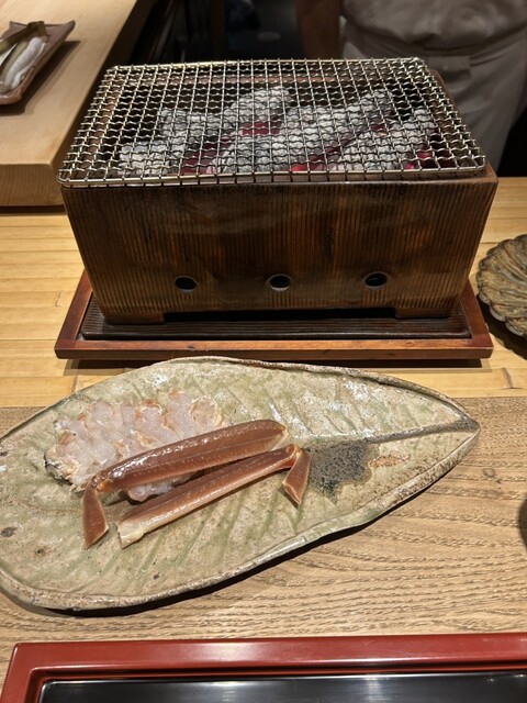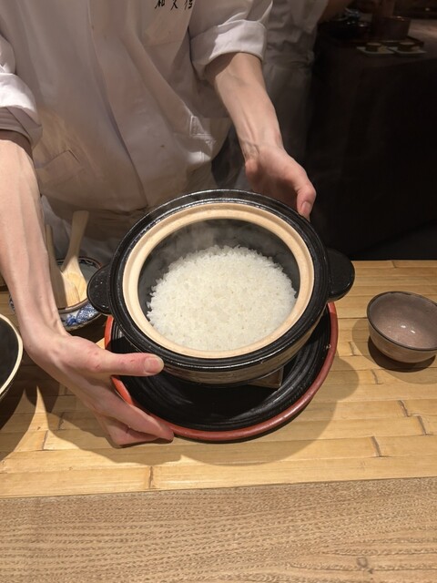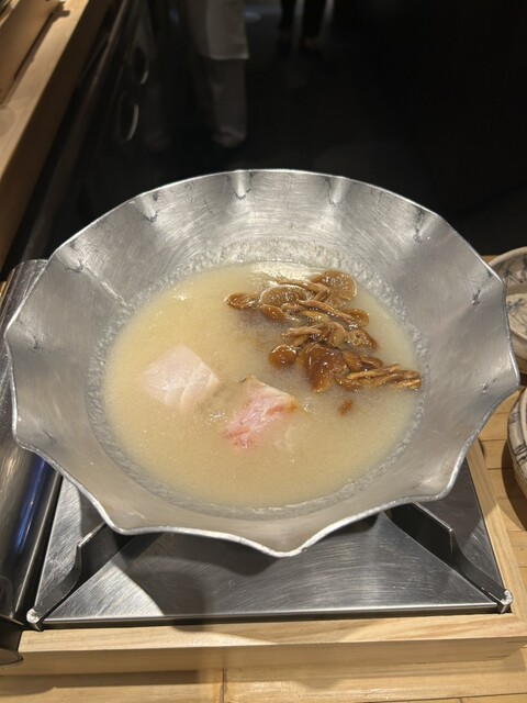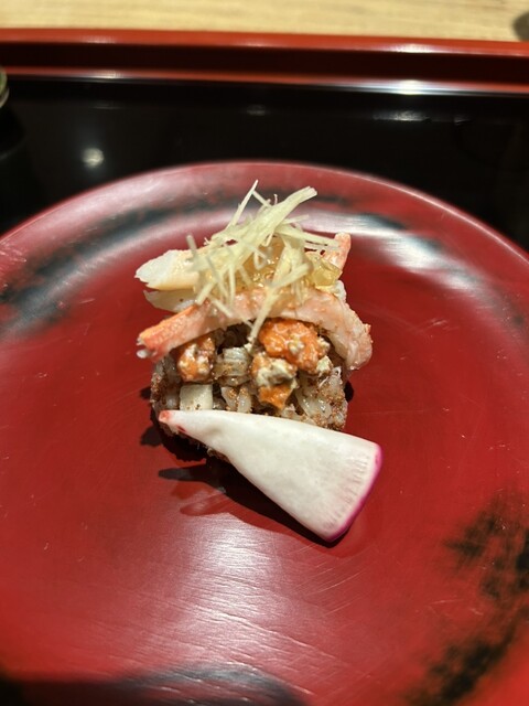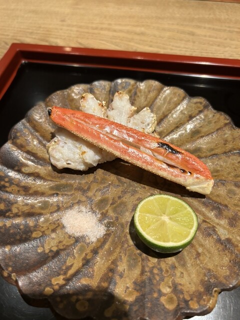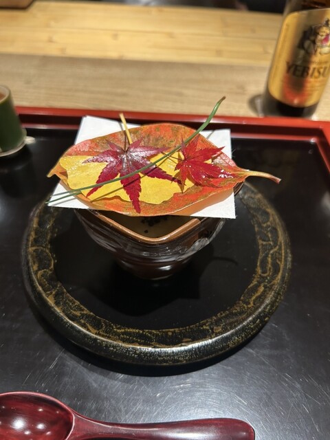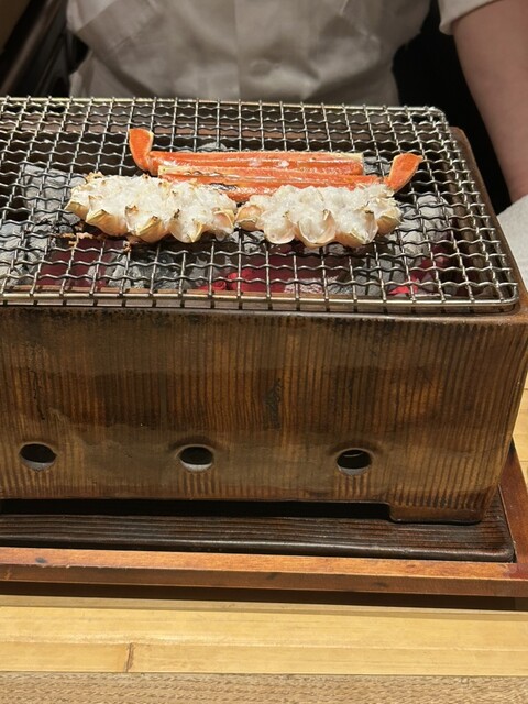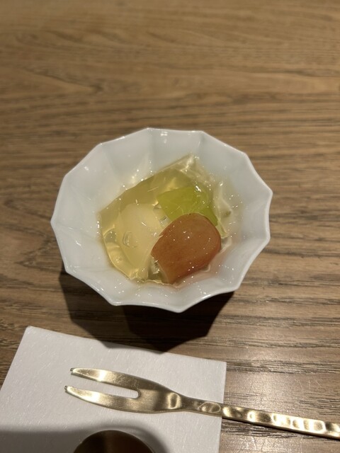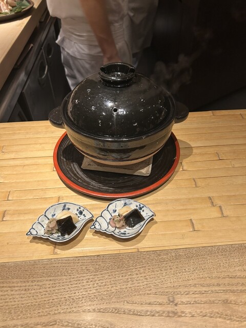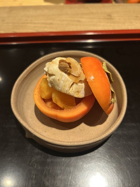 銀杏から始まり、香箱蟹のお寿司。雲子のかき揚げは香り高いナッツ味噌とともに。明石の鯛の下にはあん肝が奈良漬とともに。栃餅の中に唐墨が忍ばされており、白味噌でお上品な一品。兵庫県浜坂の蟹は炭火でふっくらと。牛肉、菊芋は卵黄と香茸のおソースで。美味です。柿は豆腐や柿酢とともに。お鍋はクエと天然なめこをすり流しで。ゆずが効いてこちらも美味しい。〆は鯖寿司、鰆の漬け丼、牛肉の卵とじ丼。どれも絶品です!甘味は葡萄とラフランスのワインゼリーと、いちじくの葛焼き。お薄とともに。こちらも美味で、最高の締めくくりとなりました。