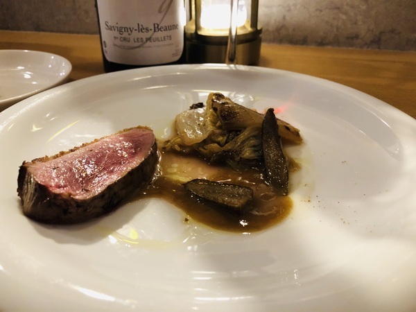 美味しいピノノワールを呑みたいと伝えて出されたのは芳ばしく焼き上げた鴨。