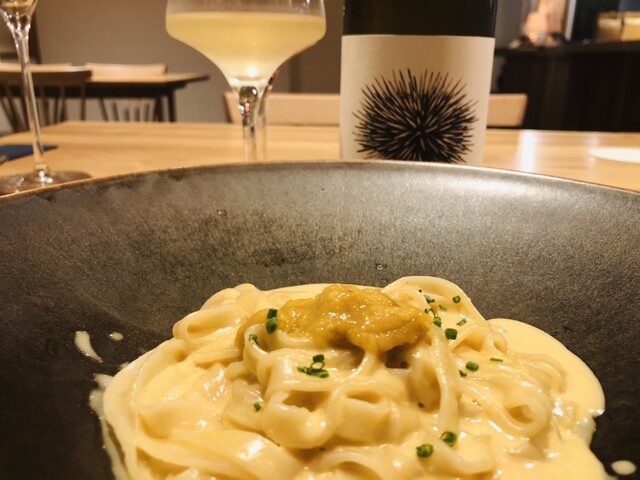 〆のパスタは雲丹のクリームパスタ♪