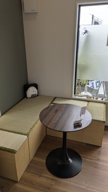 店内はカウンター席とテーブル席がございます。つくばの穏やかな朝やお昼に、ほっと一息つきたくなる一軒です。