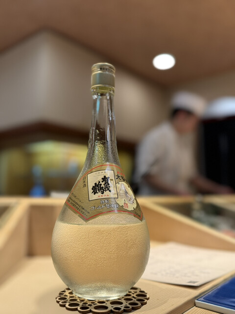 お酒は大将からのご厚意で新しい門出の祝いに相応しい「大吟醸 特製ゴールド賀茂鶴」