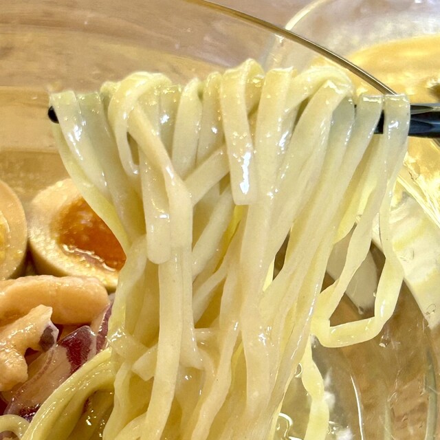 そのまま啜れば芳醇な昆布の香りや旨味が鼻から抜けるとともにこ昆布の滑りでより滑らかな啜り心地が楽しめます直後に昆布の旨味が口の中に広がります噛むほど広がる小麦とほのかな昆布の旨味と塩味が優しくも絶妙なマリアージュを楽しませてくれます