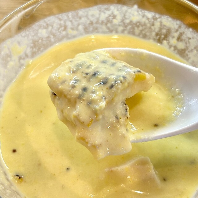 コーンの甘み際立つポタージュスープと昆布水纏った自家製麺が絶品マリアージュ