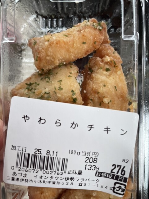 何を食べても美味しいです。今日はやわらかチキン、とりちりを購入。お弁当のおかずにもなるし、ほぼ毎日食べています。メンチカツ、野菜入り唐揚げは人気なのでお昼過ぎには無くなる時もあります。メンチカツは野菜も入っていて味付けも美味しいです。野菜入り唐揚げはごぼうや人参が衣に入っていて、香りがよいです。