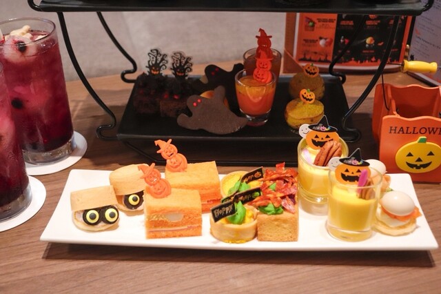 ロビー階の開放的なアトリウムラウンジで開催されており、自然光が入る明るい空間です。ハロウィンの装飾も派手すぎず、大人の女性が楽しめる上品な可愛さでした。予約をおすすめします。