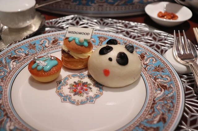 ウェッジウッドの食器でいただく、本格的なチャイニーズ・アフタヌーンティー。フードとスイーツのバランスが絶妙で、満足度の高い内容でした。