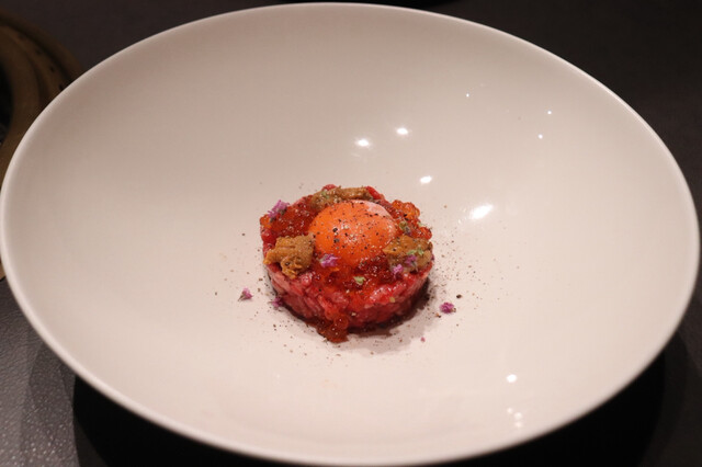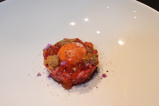 贅沢に雲丹とイクラが乗っていて、濃厚な旨味の山形牛と絡み合うことで、まさに口福の極み。これを安全に提供できる許可証があるというのは、本当にポイントが高いです。