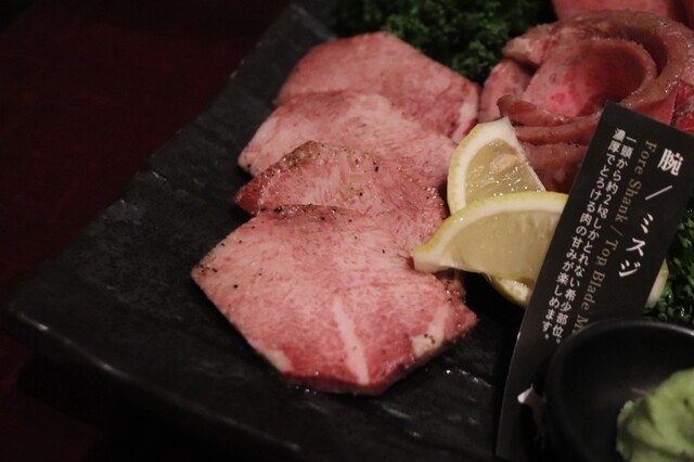 窓がないからこそ外の様子が一切気にならず、静寂の中で仲間との会話とお肉だけに集中できる、まさに大人の隠れ家。新橋にいることを忘れてしまうような贅沢な空間です。