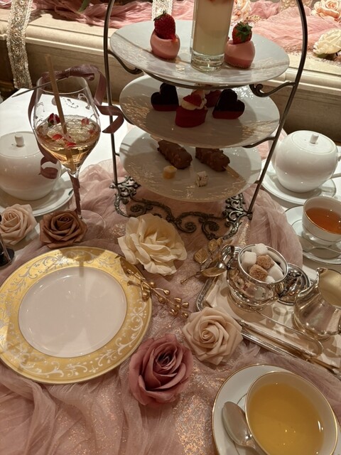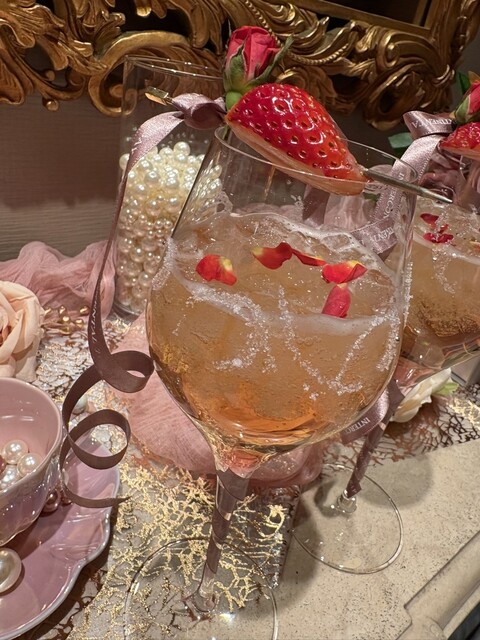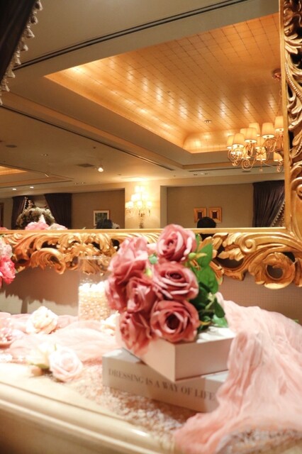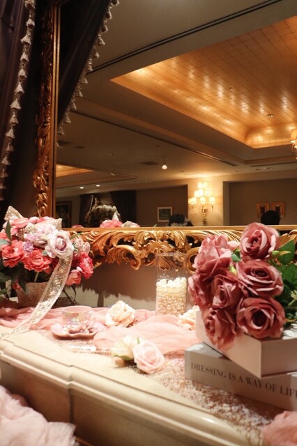 シャンデリアが煌めき、ピンクのチュールや薔薇に彩られた空間は、
