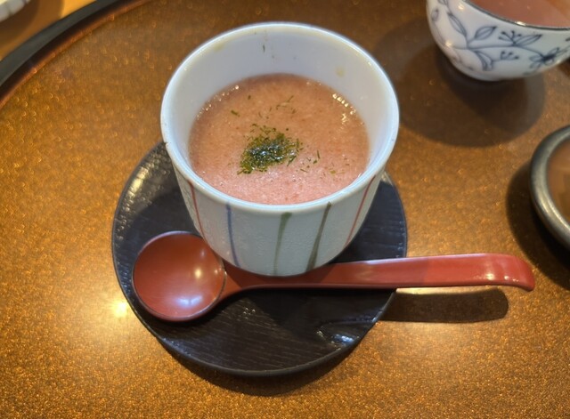 煮物は、甘さ控えめのさっぱりした醤油味。高野豆腐の揚げ出しとせいろで蒸されたかぶらご飯は、相性が良くて、どんどん箸が進みます!今回、一番好きだったのは、茶碗蒸し!!二層仕立てで、上のとろろの部分と卵液の部分を一緒に食べると、美味しい〜。デザートの焼きたてチーズケーキは、湯気が立っていて、スフレみたいに中がやわらか。夜は、これに一品追加して、3000円で食べられるそうです。私も母も大満足ランチ ごちそうさまでした(^^)!!