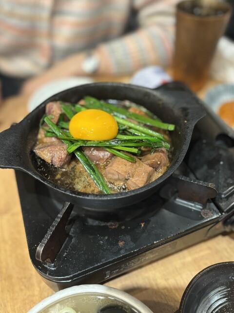 このお店はもつ焼き屋さんですが、特にレバーが抜群にうまい!“レバ煮ら”発祥の店とのことで、レバーの新鮮さとタレの旨みがとにかく別格。ニラと一緒に煮込まれていて、香りも味のバランスも完璧。まさに酒が止まらなくなる一品でした。
