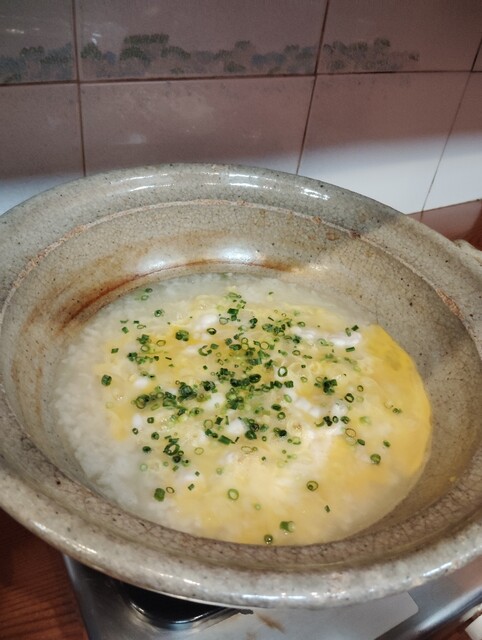 〆の雑炊は、ふぐ刺しを少し残しておいたものを雑炊の仕上げに入れて頂くのがたまりません