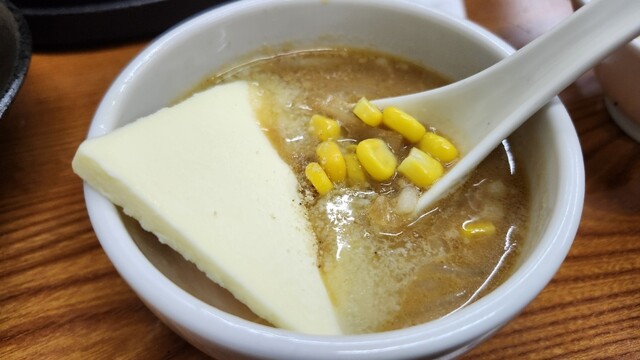 肉の旨味が溶け出したタレに、濃厚な味噌バターコーンが合流。