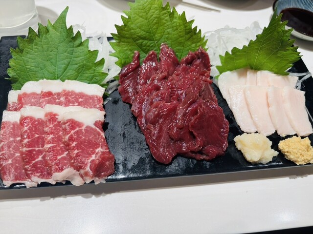 今日の発見は馬刺しで、赤身とたてがみを一緒に食べる事で油のたてがみが余らず美味く食べれる事です。