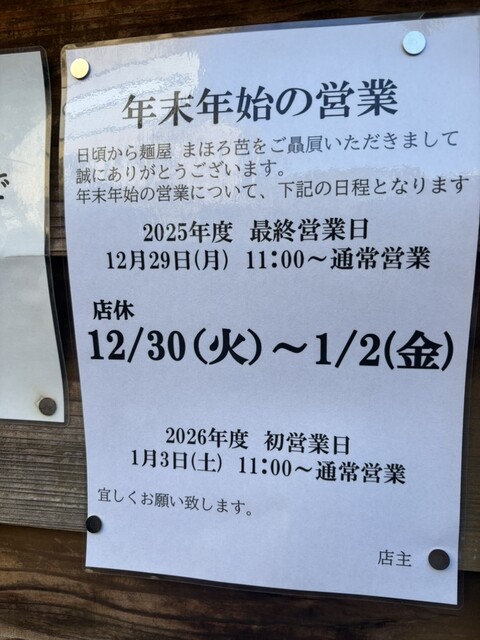 年末年始で営業のお知らせがあったので載せておきますねー