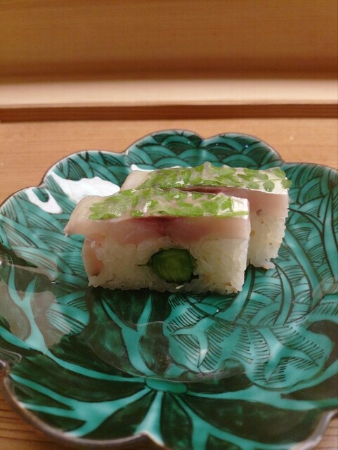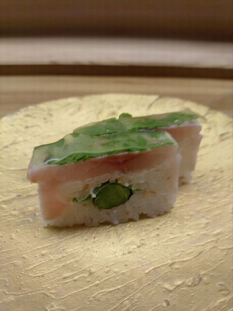 アスパラ入り押し鮨。