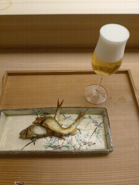 鮎とピール。まるごと一口で。