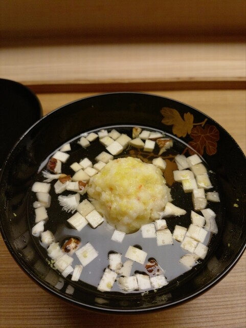 銀杏と車海老の真薯あられ松茸入